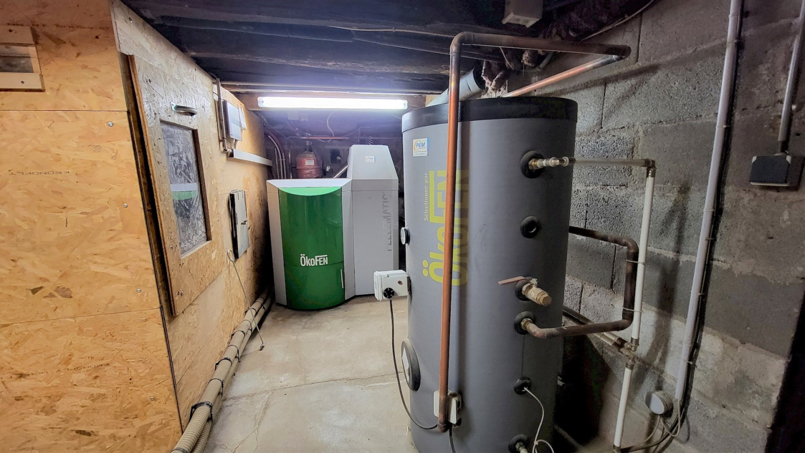 Offrant plus de 90m² Habitable, Pièce de vie de 31m², Cuisine Aménagée et équipée 13m², Trois Chambres, Salle d'eau, Buanderie, WC, Cave-Chaufferie. Garage et Cour Ouverte. Chauffage et production d'eau chaude par une chaudière haute performante OKOFEN. (Granulés de bois - Économique et Écologique)